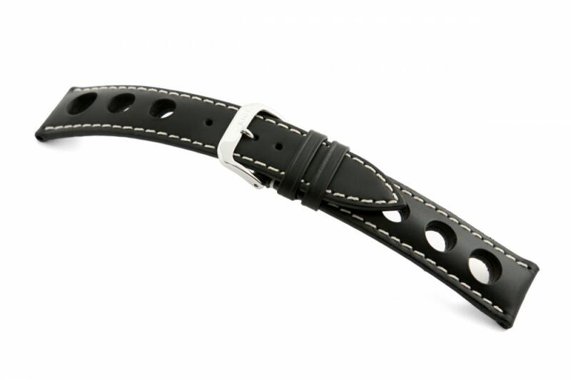 A George a Hirsch Performance kollekció klasszikusa. Sportos, vízálló óraszíj, amely finom aligátormintával nyomott borjúbőrből és a Hirsch Premium kaucsuk kombinációjából született. A fehér varrás a szíjnak klasszikus eleganciát kölcsönöz. A kaucsuk rész különleges szerkezete biztosítja, hogy a kialakuló nedvesség gyorsan elpárologjon, ezáltal elősegítse a bőr o