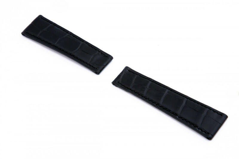 Puha, borjúbőrből készült, aligátor mintával nyomott, enyhén párnázott óraszíj a Herzog márkától. A szíj 3 mm vastag.