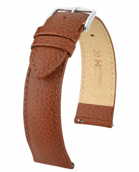 Időtlen forma, tökéletes társ a mindennapokhoz. A Hirsch Kansas tartós borjúbőrből készült óraszíj domborítással és enyhe párnázással. Gyönyörű Hirsch Traditional Deisgn csattal és gyorszáras rugósfüllel ellátva. Használja letölthetőméretezési segédletünket