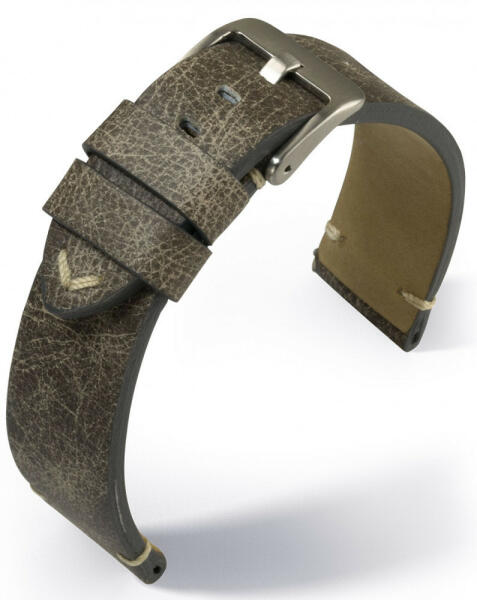 Robosztus, erős nyeregbőrből készült óraszíj színben harmonizáló varrással a Rios márkától. A szíj 3,5 mm vastag.
