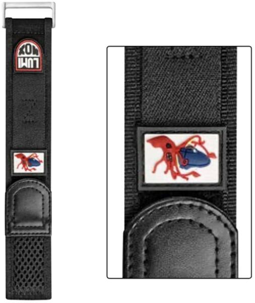 Univerzális, tépőzáras gyöngyvászon szíj, Luminox dombornyomott Luminox és Undersea Voyager logoval. Szélesség 32mm. Minden Luminox modellel kompatibilis, de a kisebb tok átmérőjű (44mm alatt) inkább a 27mm széles változatot ajánljuk.