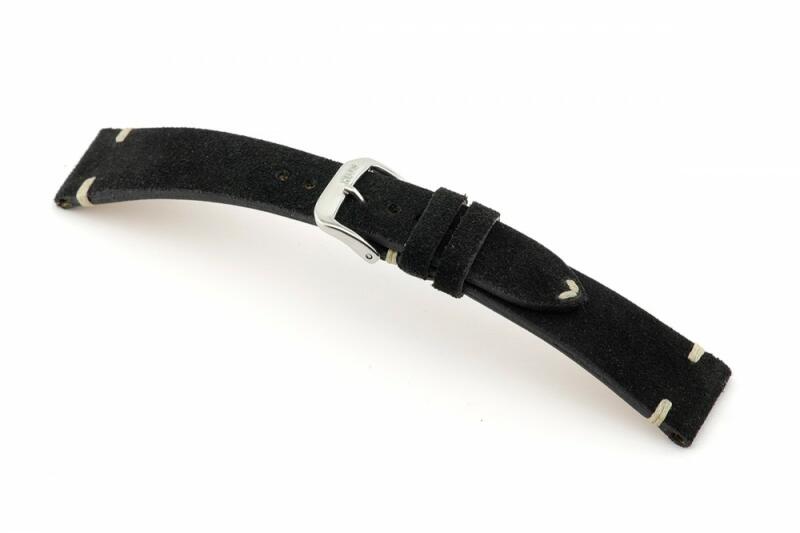 Puha borjúbőrből készült pilóta óraszíj fehér varrással a Herzog márkától. A szíj 3mm vastag.