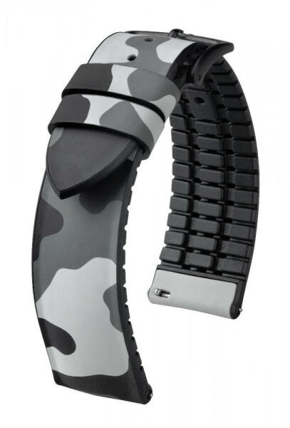 A Hirsch JOHN maga az óraszíj divatos terepszínű megjelenéssel. Túrázás, futás, hegymászás: a JOHN óraszíj mindig a megfelelő társ útközben. Az egyedi megjelenés a megfelelő design a karórájához. A HIRSCH prémium minőségének köszönhetően az óraszíj robusztus anyagával lenyűgöz. A JOHN karóraszíj modell erőteljes kialakításának eredményeként a szíj szilár
