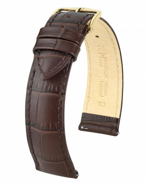 A legfinomabb olasz borjúbőr természetes hatású aligátor mintázattal és dombornyomott, kissé matt felülettel. Harmónikusan kialakított párnázás, finom tónusú visszavart varrás jellemzi ezt az örökzöld Hirch óraszíjat. Mindehez gyönyörű Hirsch Traditional Design csat is tartozik. Használja letölthetőméretezési segédletünket