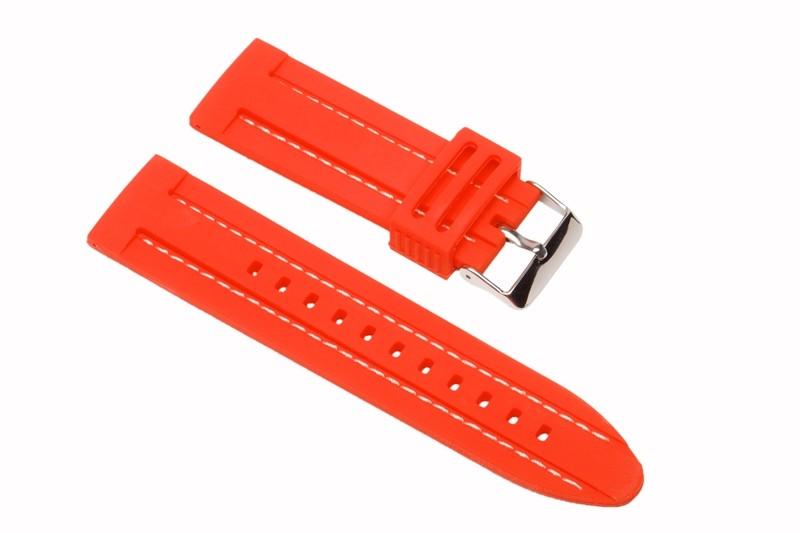 Szilikon óraszíj Szín: piros, fehér varrással Anyaga: szilikon, fényes acél csatt Szélessége: 22 mm Hossz: 130/75 mm (plusz csat) Vastagság: 4 mm Használja letölthetőméretezési segédletünket !