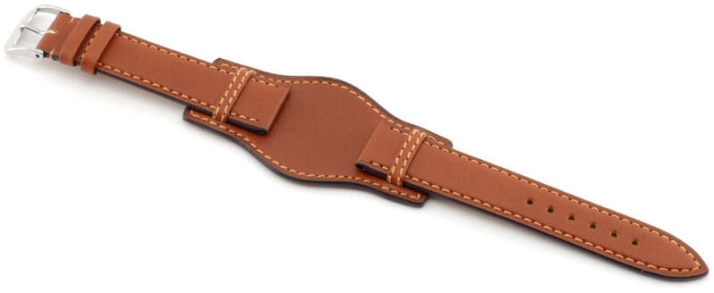 Kiváló minőségű pilóta stílusú óraszíj a Rios márkától. Bőr hátlapja puha, kényelmes viselet, ideális fémallergiában szenvedők számára is. Az óraszíj cserzett bőrből készült, nyírfaolajjal kezelt. A szíj 2mm-t szűkül és 3,5mm vastag.
