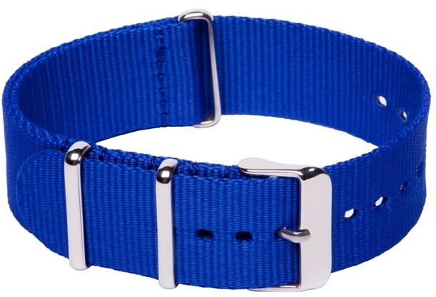NATO óraszíj Ajánlott búvár (diver), katonai (military) és sportos stílusú karórához. Klasszikus viselet! Szín: kék Anyaga: nylon textil, fényes acél csat Szélessége: 22 mm Hossz: 270 mm Vastagság: 1 mm Használja letölthetőméretezési segédletünket !