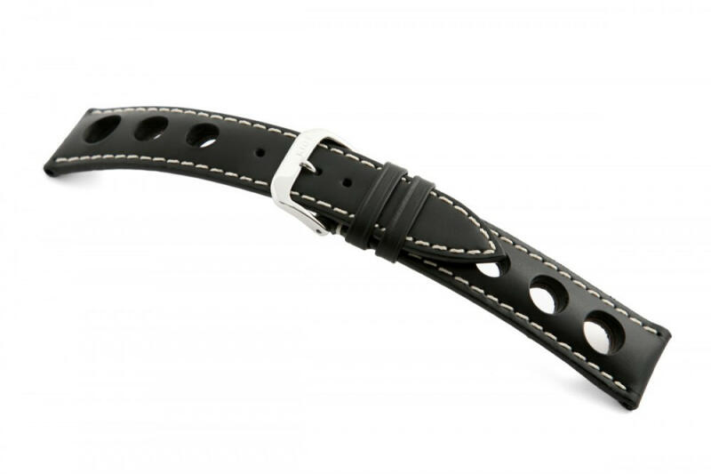 Puha, matt borjúbőrből készült, enyhén párnázott, varrott óraszíj a Herzog márkától.