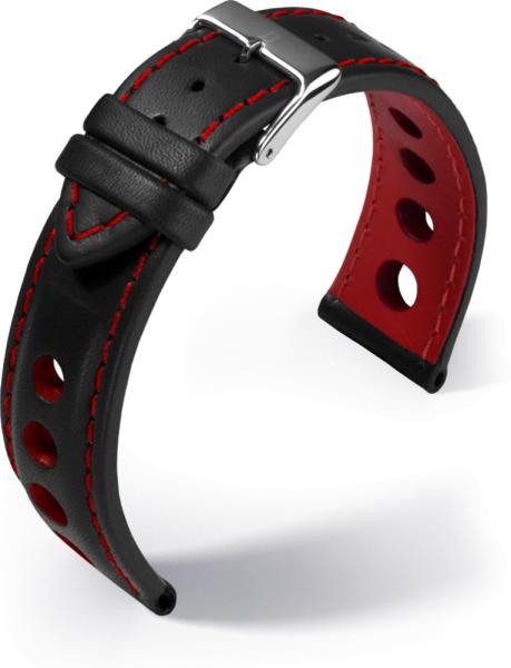 A Hirsch Tiger az ideális társ a sporthoz és a mindennapokhoz. Karcálló, kopásálló, kiváló minőségű perforált borjúbőr kivételesen finom kidolgozással és Hirsch Prémium kaucsuk felhasználása a belső felületen. Karakteres rozsdamentes acél csattal és gyorszáras rugósfüllel, nagy színválasztékban. Használja letölthetőméretezési segédletünket