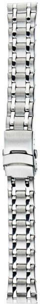 Rozsdamentes acélból készült óraszíj pillangócsattal, kivehető láncszemekkel. A nagyobb szemek mattak, a kisebbek polírozottak. Szélesség: 22 mm Hossz: 18,5 cm Vastagság: 3-4 mm