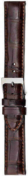 Puha, borjúbőrből készült, aligátor mintával nyomott, enyhén párnázott óraszíj a Herzog márkától. A szíj 3 mm vastag.