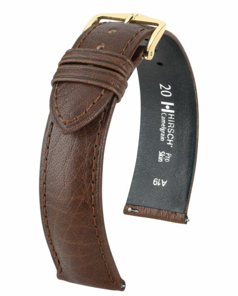 Az óraszíjak érzékeny bőrű szerelmesei szeretik a HIRSCH Essential termékcsalád klasszikus bőrkímélő termékét. A Hirsch Camelgrain robusztus borjúbőrből készül, amely a rostmélységig dobfestve van és HIRSCH Pro Skin védőbevonattal van ellátva. A Pro Skin eljárást a bécsi University Skin Clinic-kel együttműködésben fejlesztették ki, és bőrgyógyászatilag tesztelt