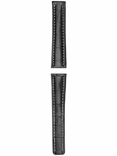 Pillangócsathoz alkalmas borjúbőrből készült, aligátor mintával nyomott, párnázott óraszíj fehér varrással a Herzog márkától. A tüskecsathoz nincsen rajta furat, a régebbi Breitling pillangócsatokhoz tökéletesen illik. Más márkák pillangócsatjához is illeszthető, de a tüskecsat számára szükséges egy furat készítése. A szíj 5 mm vastag. 20-22mm -es méretben kap