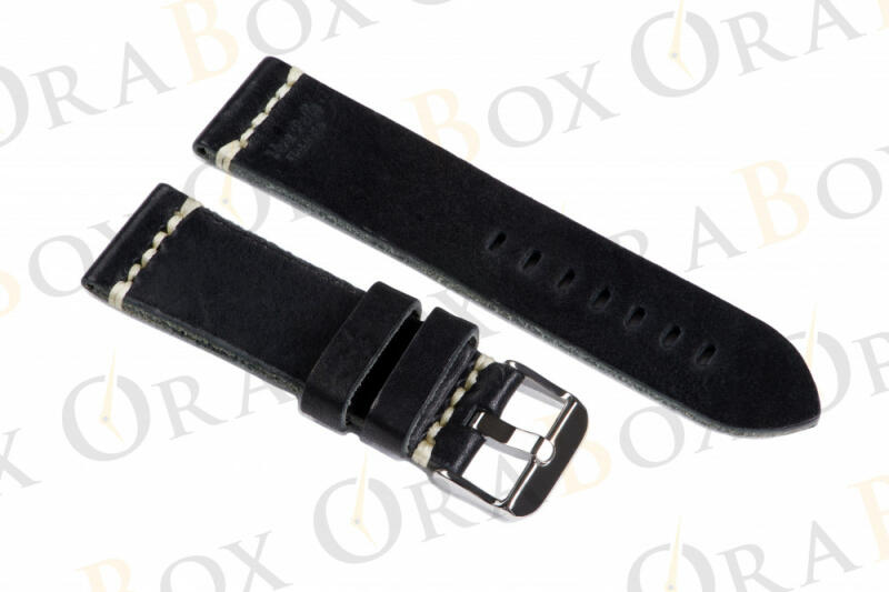 Puha, matt borjúbőrből készült, enyhén párnázott, varrott óraszíj a Herzog márkától. Extra hosszú méret.