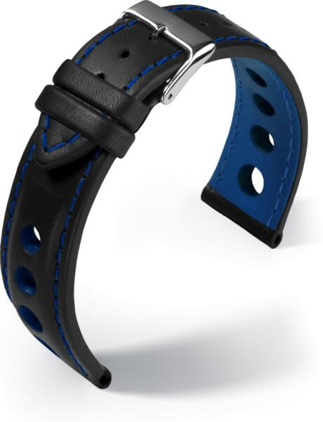 Anyaga: bőr Hossza: 120x80mm Szélessége: 18mm Színe: fekete/kék Csat anyaga: acél Használja letölthetőméretezési segédletünket !