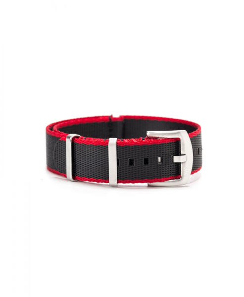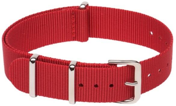 NATO óraszíj Ajánlott búvár (diver), katonai (military) és sportos stílusú karórához. Klasszikus viselet! Szín: meggypiros Anyaga: nylon textil, fényes acél csatt Szélessége: 18 mm Hossza: 270 mm astagság: 1 mm