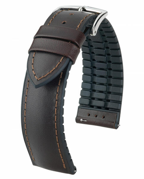 A James egy sportos, vízálló óraszíj, amely finom borjúbőrből és a Hirsch Premium kaucsuk kombinációjából született. A kaucsuk rész különleges szerkezete biztosítja, hogy a kialakuló nedvesség gyorsan elpárologjon, ezáltal elősegítse a bőr optimális légzését. Szerszám nélkül felhelyezhető az órára a gyorsszáras rugófülnek köszönhetően.