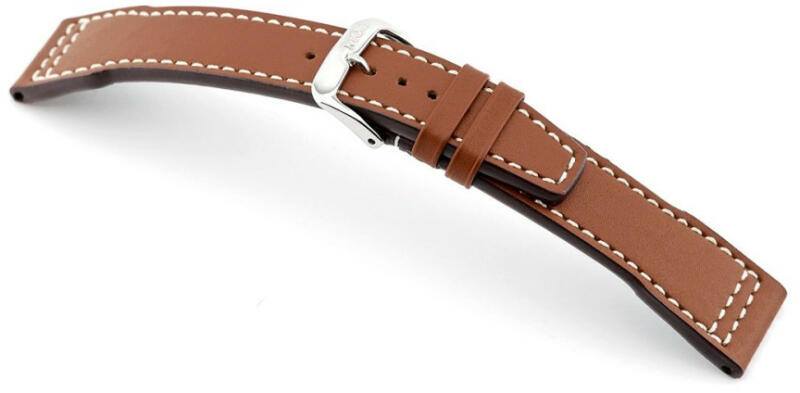 Kiváló minőségű, masszív bőr óraszíj a Rios márkától. Krémfehér varrással készült, szögletes sítulsban. Kompatibilis IWC órákkal. A szíj 2 mm-t szűkül és 3,5mm vastag.