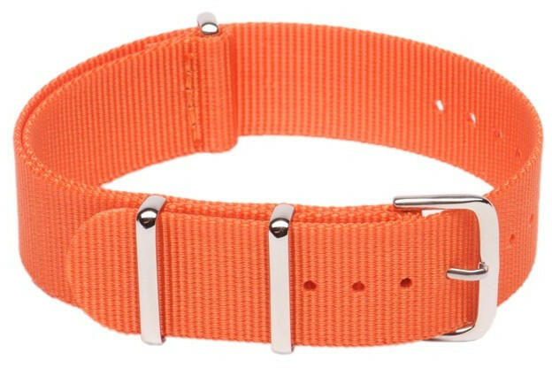 NATO óraszíj Ajánlott búvár (diver), katonai (military) és sportos stílusú karórához. Klasszikus viselet! Szín: narancs Anyaga: nylon textil, fényes acél csat Szélessége: 16 mm Hossz: 270 mm Vastagság: 1 mm Használja letölthető méretezési segédletünket !