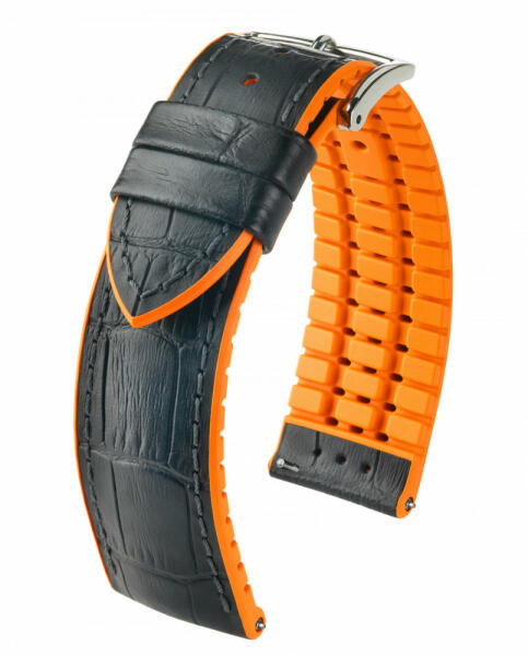 A Hirsch Andy Prémium hibrid óraszíj pimasz és magabiztos. Klasszikus aligátor mintázat, alatta a színes Hirsch Prémium kaucsuk helyezkedik el. A Hirsch Performance kollekció része ez az óraszíj, mely párnázásának és kialakításának köszönhetően szinte észrevétlen a csuklón. A karóraszíj kapható 18, 20, 22 és 24 mm-es méretekben. Minden Hirsch Andy Prémium óraszíj