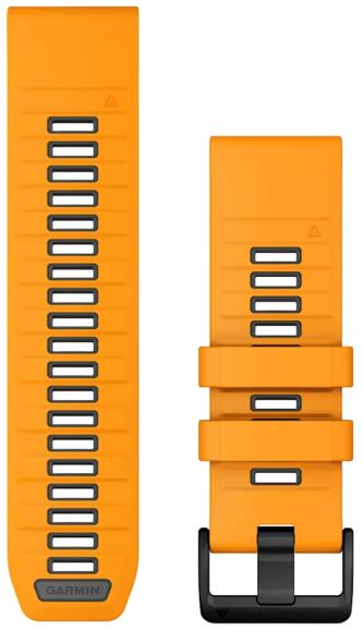 Narancssárga színű szilikon gyorscserés óraszíj, grafitszínű betéttel és fekete csattal. A szíj belső fele szintén grafitszínű, ehhez a mérethez 2db bujtatót kapsz.