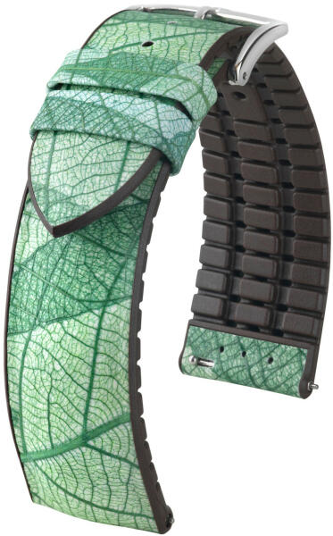 A természet inspirálta levélmintás Hirsch Leaf az új Hirsch Nature kollelció része. Megújuló, természetes alapanyagokból készül, 100%- ban vegán, állatmentes. A szíjak mindegyike egyedi, kézzel festett. Belső része Hirsch Premium kaucsukból készült, ami garantálja, hogy az óraszíj hosszú ideig strapabíró és vízálló legyen. Az óraszíj karcálló és kopásálló, t