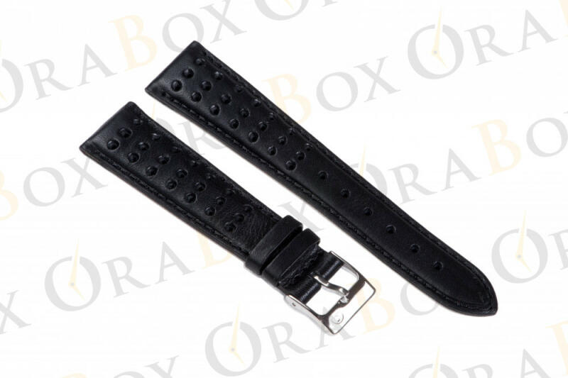 Puha, borjúbőrből készült, gyíkbőr mintával nyomott, enyhén párnázott óraszíj a Herzog márkától. A szíj 3,5 mm vastag. 14-22mm -es méretben kapható.