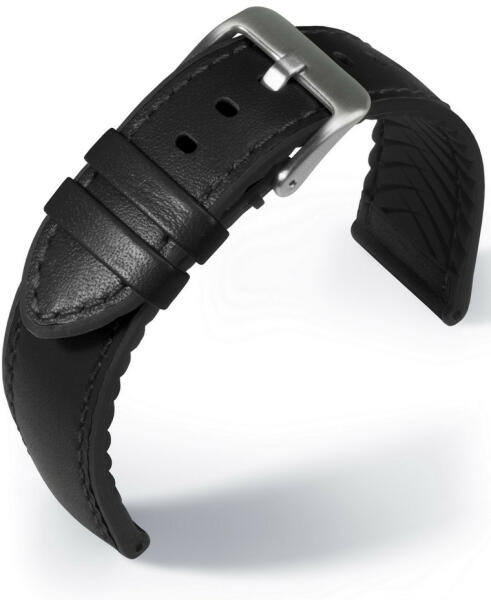 Puha, borjúbőrből készült, aligátor mintával nyomott, enyhén párnázott óraszíj a Herzog márkától. A szíj 3 mm vastag.