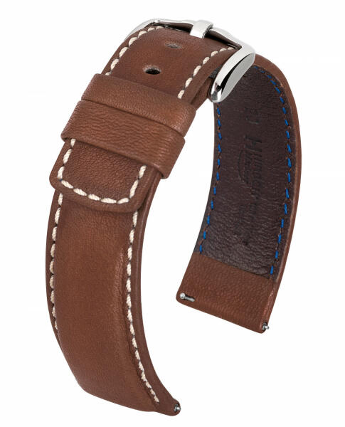 Kiváló minőségű, masszív bőr óraszíj a Rios márkától. Enyhén párnázott, fehér varrással készült. A szíj 4 mm-t szűkül és 3,5-3mm vastag.