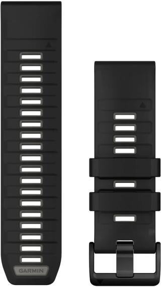 Fekete színű szilikon gyorscserés óraszíj, kavicsszürke színű betéttel és fekete csatal. A szíj belső fele szintén vkavicsszürke, ehhez a mérethez 2db bujtatót kapsz.