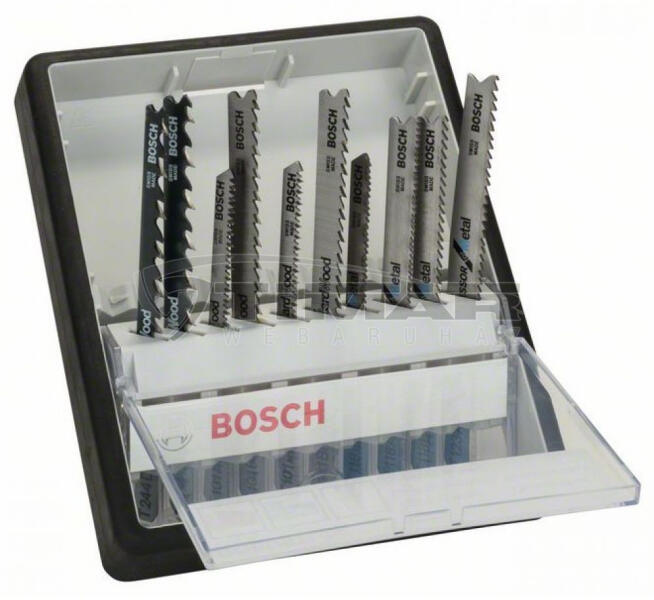 szablyafűrészlap klt. , 5db, Bosch befogás, HCS/Bimetál, fa, műanyag, fém anyagokhoz Tartalma:1 db S644D (HCS, köszörült fogak, 150×19×1,2mm- 6TpI), fára: 6-100mm, laminált lapra: 6-60mm, és műanyagra1 db S744D (HCS, mart fogak, 150×19×1,27mm-6TpI), fára: 6-100mm, laminált lapra: 6-60mm, és műanyagra1 db S1531L (HCS, köszörült fogak, 240×19×1,5mm-5TpI), fára: 15-190mm é