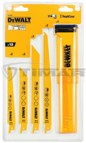 Termék részletekDEWALT DT2445-QZ Kardfűrészlap készlet - 12 db-os Kiemelkedő vágásteljesítményű, hosszú élettartamú bi-metal fűrészlapok univerzális munkálatokra. Készlet tartalma: 1x DT2345 (152 mm): Univerzális használatra fában, szegezett fában, alumíniumban és üvegszálban. Ideálisan használható akkumulátor üzemű gépeken. 3x DT2349 (228 mm): Gyors vágások szegezett fában, kem