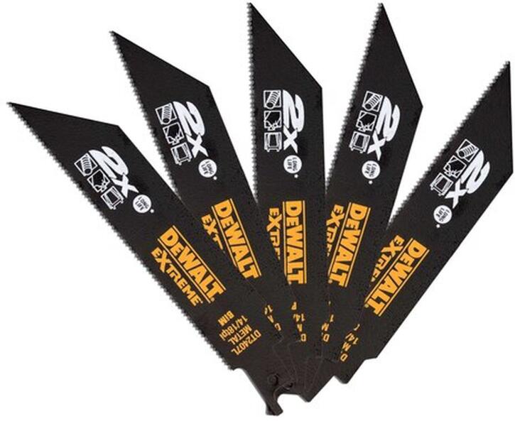 DEWALT DT2407L-QZ Kardfűrészlap fémek vágására 152 mm - 5 db/csomag HCS és HSS minőségű acélt tartalmazó Bi-Metal fűrészlapok, flexibilisek és tartósak. A fogosztás maximális tartósságot biztosít. Felhasználás: Kemény fémek
