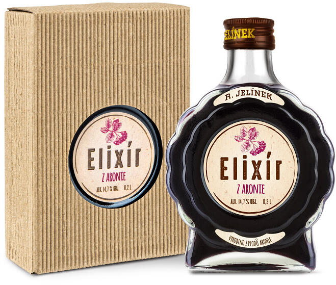 R. Jelínek Elixír z Aronie Budík 14,7% 0,2l GB (fekete berkenye párlat) Az arónia elixírje a gyümölcs finom szemű alkoholban való macerálásával készül. A tökéletes lúgozás után az aronia terméseit leszűrik, meghagyva a jellegzetes bíbor-fekete színt és természetes zavarosságot, ami a macerált termésekből származik. Az utolsó gyártási lépés ezután vízzel 14,7%-