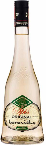 Spiš Original Borovička 0,7l 40%25 Hagyományos és ugyanakkor exkluzív márkájú alkohol, amelynek alapja egy minőségi természetes fenyő párlat (borovicska). A boróka jellegzetes ízével és aromájával, amelyet tovább fokoz az egyes palackokban található borókadarab.
