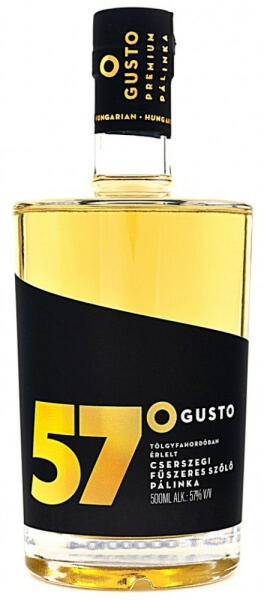 Tölgyfahordóban érlelt cserszegi fűszeres szőlőpálinka. A Gusto érlelt pálinkái egytől-egyig a legkiválóbb minőségű magyar gyümölcsök felhasználásával készülnek. Íz világuk az érlelésnek köszönhetően még inkább kiemeli a felhasznált gyümölcsök karakterét, zamatát. A markáns, karakteres, nehéz illatú és ízű párlatokat különböző anyagú fákból kés