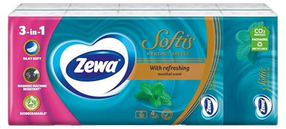 Papírzsebkendő ZEWA Softis Menthol Breeze 4 rétegű 10x9 darabos