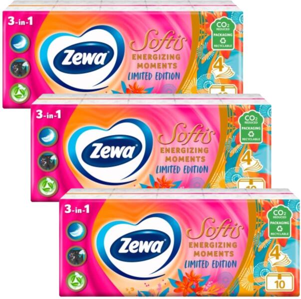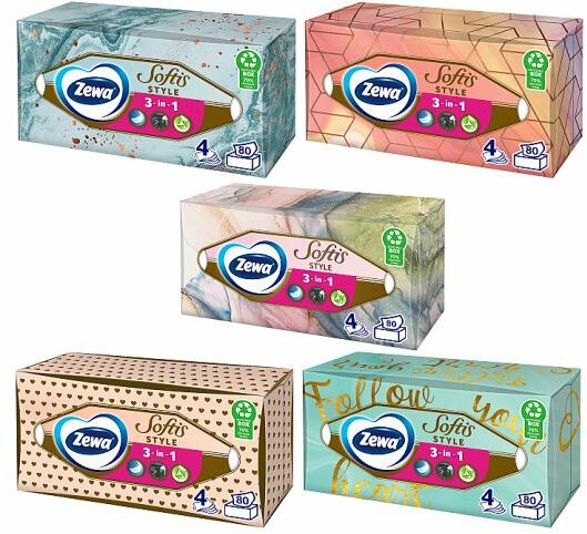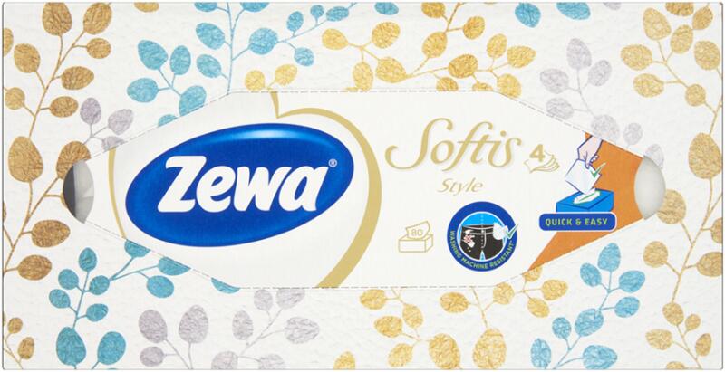 A Zewa Softis különlegesen puha és extra erős, kényeztető, 4 rétegű papírzsebkendő az új Zewa Softis design-dobozokban az igazi prémium minőséget képviseli. Azoknak, akik a legpuhább papír zsebkendőt keresik: az új Zewa Softis dobozok kiemelkedő minőségű zsebkendői nagyon erősek, mégis gyengéd kényeztetést nyújtanak a bőrnek. A többféle prémium design közül mind