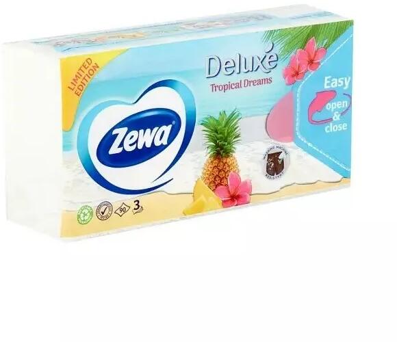A 3 rétegű Zewa Deluxe Spirit of Tea papírzsebkendő enyhe illatával, és szakadásmentes puhaságával gyengéd, megbízható gondoskodást garantál minden élethelyzetben. A könnyen nyitható és visszazárható csomagolás még kényelmesebbé teszi a használatát! A Zewa 3 az 1-ben papírzsebkendőkkel egyszerre törődhetsz magaddal, szeretteiddel és a környezettel is. Új, továbbfe