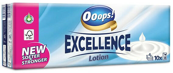 Papírzsebkendő OOOPS! Excellence Lotioned 4 rétegű 10x8 darabos