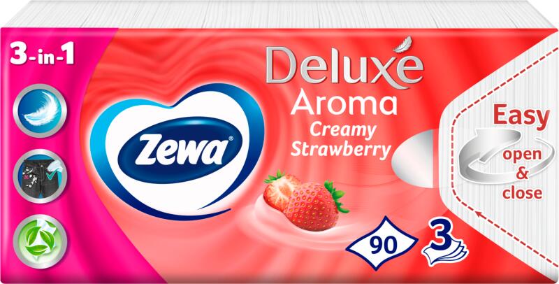 Papírzsebkendő ZEWA Deluxe 3 rétegű 60 darabos dobozos Aroma Collection Kellemes rózsaillattal átitatott, 3 rétegű papír zsebkendő. A kocka alakú doboz praktikusan használható az otthon bármely pontján. A három féle exkluzív, stílusos dizájn egyben a lakberendezés üde színfoltja is. Három puha és erős réteggel, megújult nyitófelülettel. - mosógépbiztos - fehér - il