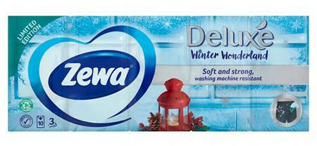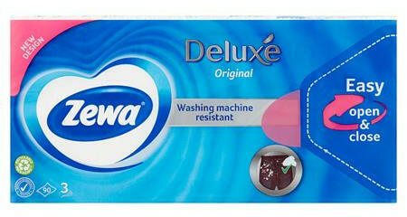Papír zsebkendő, 3 rétegű, 10x10 db, ZEWA "Deluxe", illatmentes Három rétegű puha papír zsebkendő. Illatmentes. Kiszerelés: 10x10 db