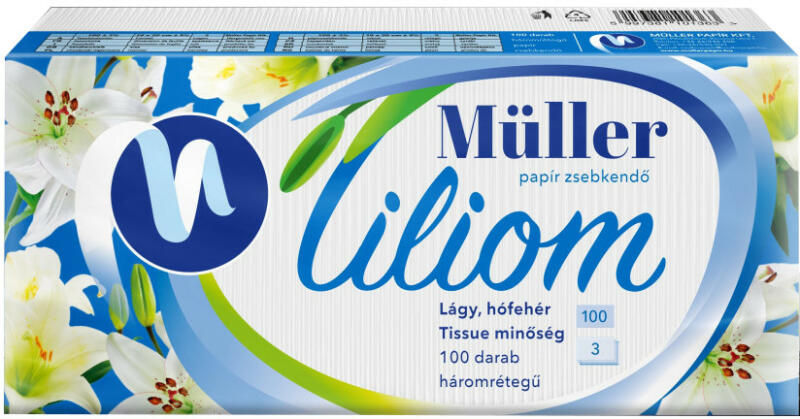 Papírzsebkendő MÜLLER 100db-os 3 rétegű Aloe vera Három rétegű papír zsebkendő aloe vera illattal.
