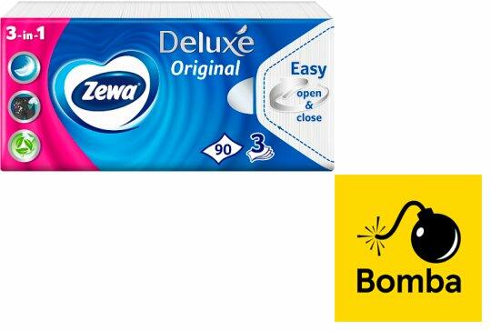 A 3 rétegű Zewa Deluxe illatanyagmentes, klasszikus papírzsebkendő, mely biztosítja a szakadásmentességet, miközben érintéskor a pamut puhaságával kényeztet. Zewa Deluxe Classic 3 rétegű papírzsebkendő (90 db) Három rétegű, klasszikus papírzsebkendő Illatanyagmentes Valódi gyapotrostok biztosítják a szakadásmentességet Könnyen nyitható és visszazárható csomagolás A
