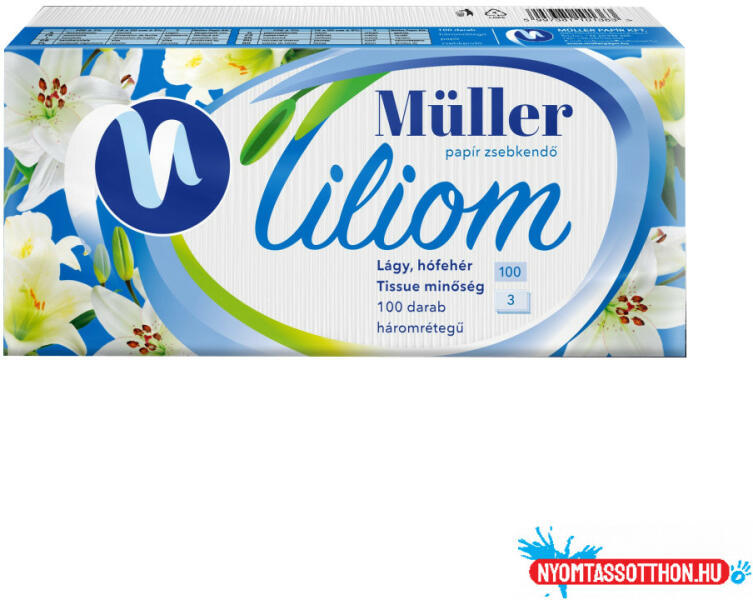 Papírzsebkendő 3 rétegű 100 db/csomag Liliom illatmentes 100 lap/cs, 50 cs/#, 21 #/raklap