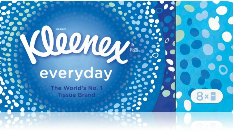Kleenex Everyday, 8x9 db, Papír zsebkendő nőknek, Ha az egészségről van szó, felejtse el a nosztalgikus anyagkendőket és használjon Kleenex Everyday papír zsebkendőt. Rengeteg kellemetlen szituációban képesek védelmet nyújtani otthon és a világban is. Érdemes mindig kéznél tartani. Tulajdonságok: előnyös csomagolás az egész családnak remek segítő megfázáskor nagyon