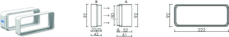 Lapos csatorna átalakító Quadro sorozathoz. Az átalakító két részből áll (átalakító + lapos csatorna darab). Az átalakító a Quadro sorozathoz használható amennyiben a további elvezetést a Falmec KACL. 352 lapos csatornával szeretnénk megoldani. Ebben az esetben szükség van még egy Falmec KACL. 356 csatlakozó/toldó elemre is. Amennyiben a további elvezetést a GONAL FL-2