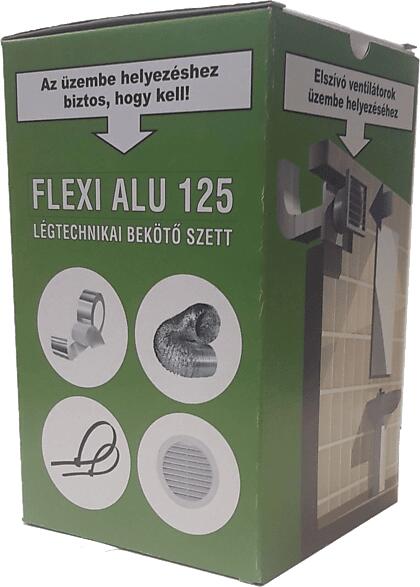 3 méter 125 mm átmérőjű flexibilis ALU cső, 2 db rögzítő bilincs, 2 db légtechnikai rögzítő szalag, 1 db 125 mm átmérőjű kerek fix rács. 125 mm-es csőátmérővel rendelkező páraelszívók kivezetéséhez.