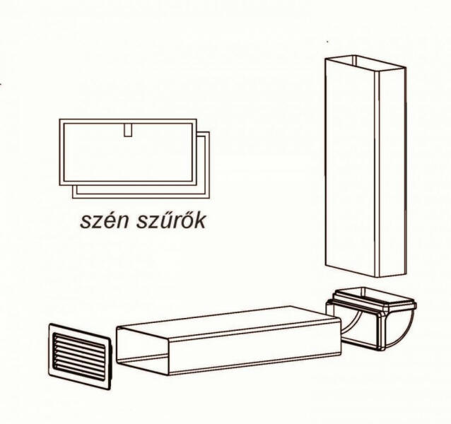 aktívszén-szűrő szett belső keringtetés esetén S-DDH5 elszívóhoz a szett tartalma: 2 db KF59 szűrő 2 db lapos csatorna 220x90 mm, hosszúság: 610 mm 1 db függőleges lapos sarok elem, 220x90 mm 1 db lábazati rács, 220x90 mm Páraelszívó keringtetési üzemmódban: Ebben az üzemmódban az elszívott levegő a zsírszűrőkön áthaladva, egy aktívszén-filteren is keresztülhalad