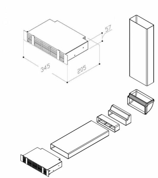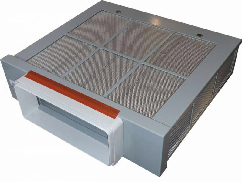 Nagy hatékonyságú regenerálható aktívszén-szűrő szett konyhabútor lábazatába belső keringtetés esetén SIRIUS pultba építhető elszívókhoz. Minimum lábazati magasság: 60 mm a szett tartalma: 1 db ház és 1 db KFH szűrő 1 db lapos csatorna (220x90 mm, 610 mm hosszúság) 1 db lapos csatorna függőleges (220x90 mm), 1 db átalakító adapter (220x90- 220x55 mm-re) 1 db lapos